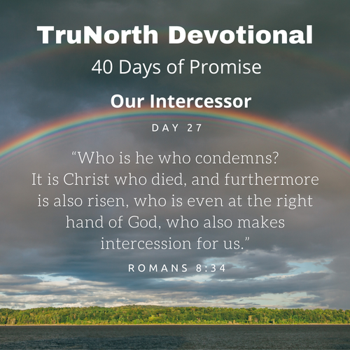 That’s a practical story to help you understand this verse from Romans, which tells us the great PROMISE that WE have an intercessor too, and his name is Jesus Christ.