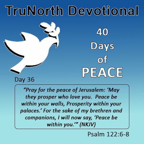 “Pray for the peace of Jerusalem: ‘May they prosper who love you. Peace be within your walls, Prosperity within your palaces.’ For the sake of my brethren and companions, I will now say, ‘Peace be within you.’” (NKJV)
