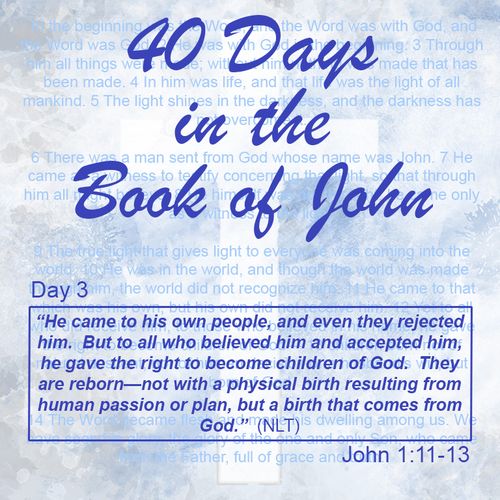 “He came to his own people, and even they rejected him. But to all who believed him and accepted him, he gave the right to become children of God. They are reborn—not with a physical birth resulting from human passion or plan, but a birth that comes from God.” (NLT)