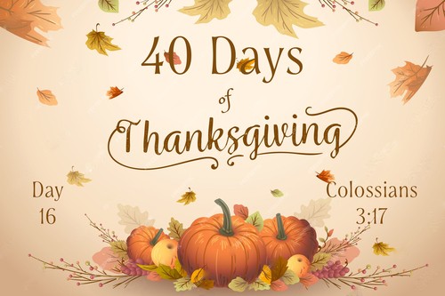 Put everything on MUTE (phone/computer/TV/car et al), re-read today’s verse. Then close your eyes, relax, take 2-3 deep breaths … and then start to pray (“Dear Heavenly Father…” or “Our Father who art in heaven…”). You might continue by saying: “Lord, I need your help. I WANT to be more thankful, and YOU deserve my thanks, so I’m asking You to help me.”
