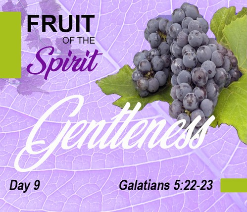 Gentleness – also translated as meekness – involves humility, thankfulness towards God, and restrained behavior towards others. One who demonstrates this fruit is not weak but chooses to be polite in dealing with others.