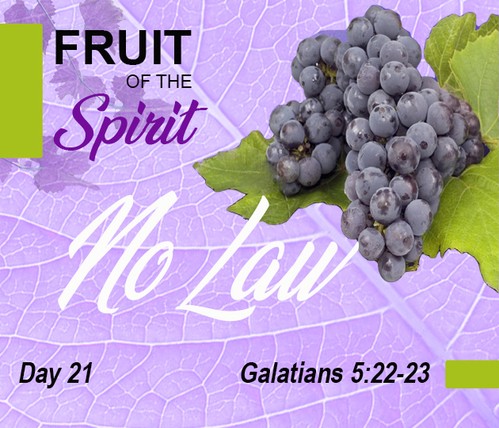 Paul’s statement “There is no law against these things” was probably a purposeful UNDERSTATEMENT used for effect. The Law – both in the Scripture and in our communities – is given to restrain evil. But these qualities – the FRUIT of the Spirit – do not need to be controlled or limited. In fact, if EVERYONE lived lives full of the fruit of the Spirit (which is NOT possible without the infilling of the Holy Spirit), our communities would be crime-free.